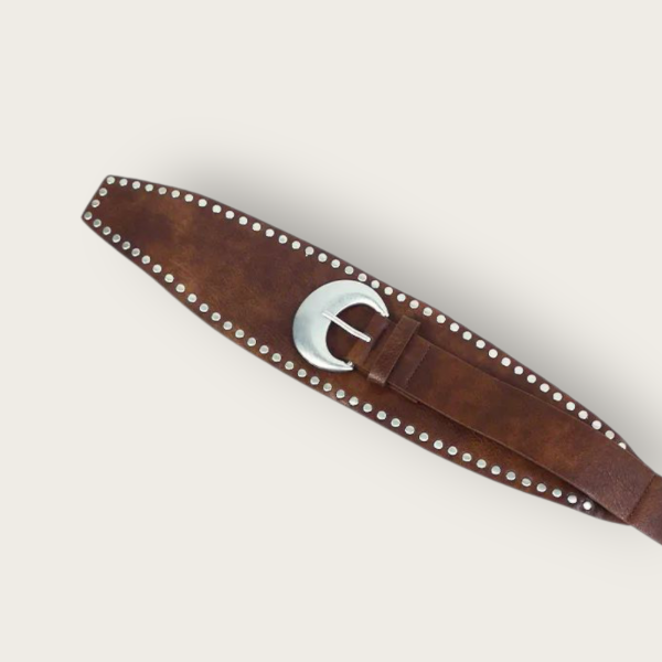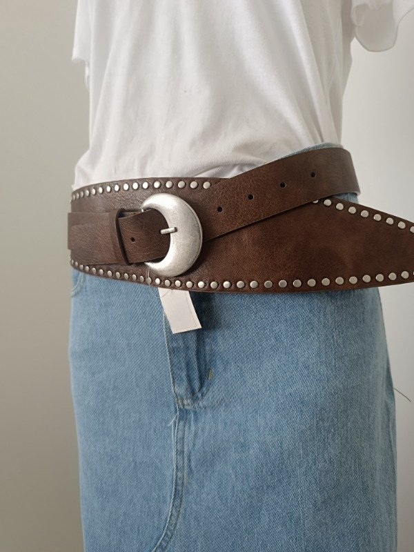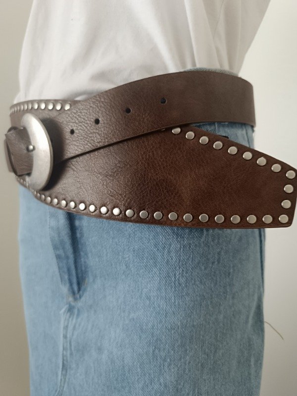 Cinto ancho cuero ecológico hebilla metálica satinada